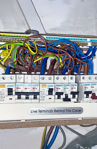 Complete replacement of outdated fuse boxes or overloaded boards with modern switchboards featuring circuit breakers and RCDs for improved safety and compliance.